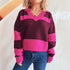 Contrast Color Striped Knitted Lapel Commuter Long Sleeve Women's Sweater