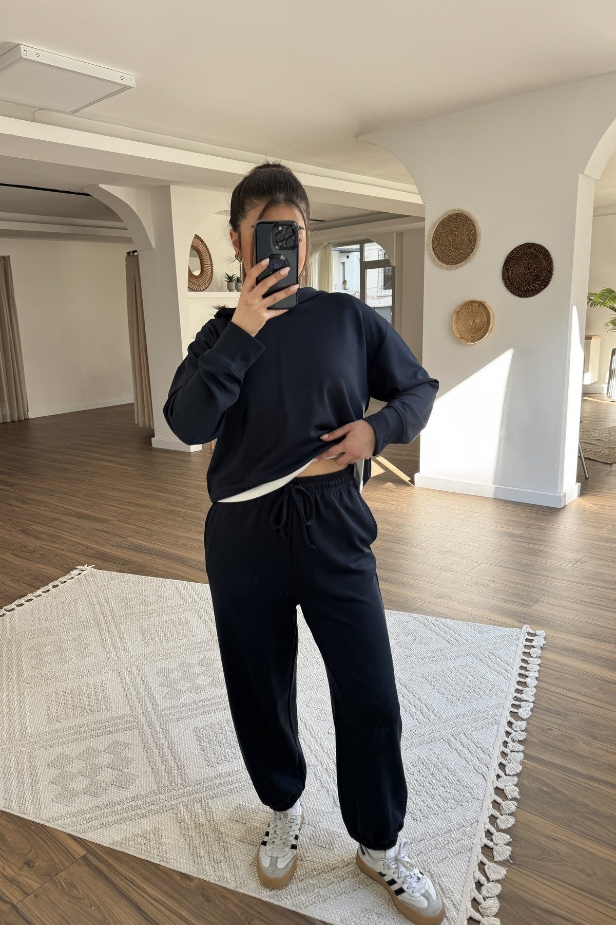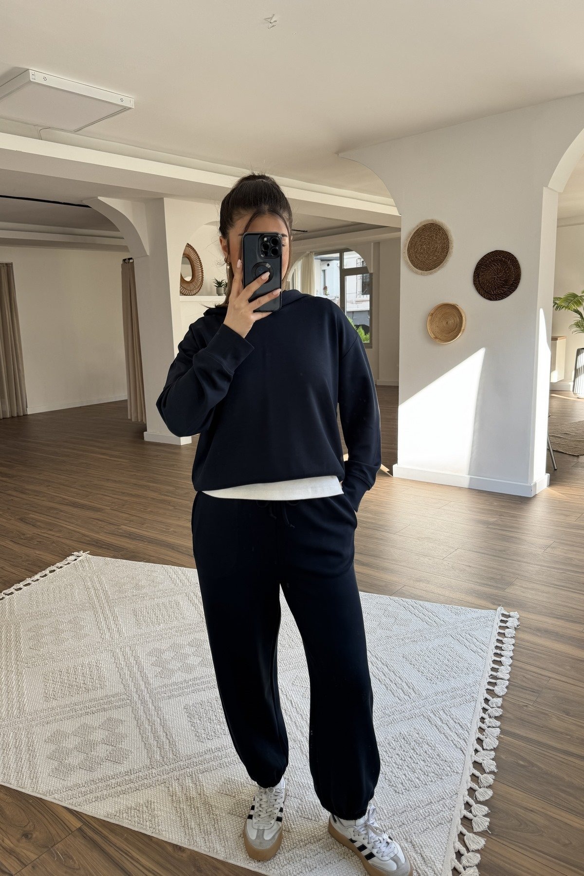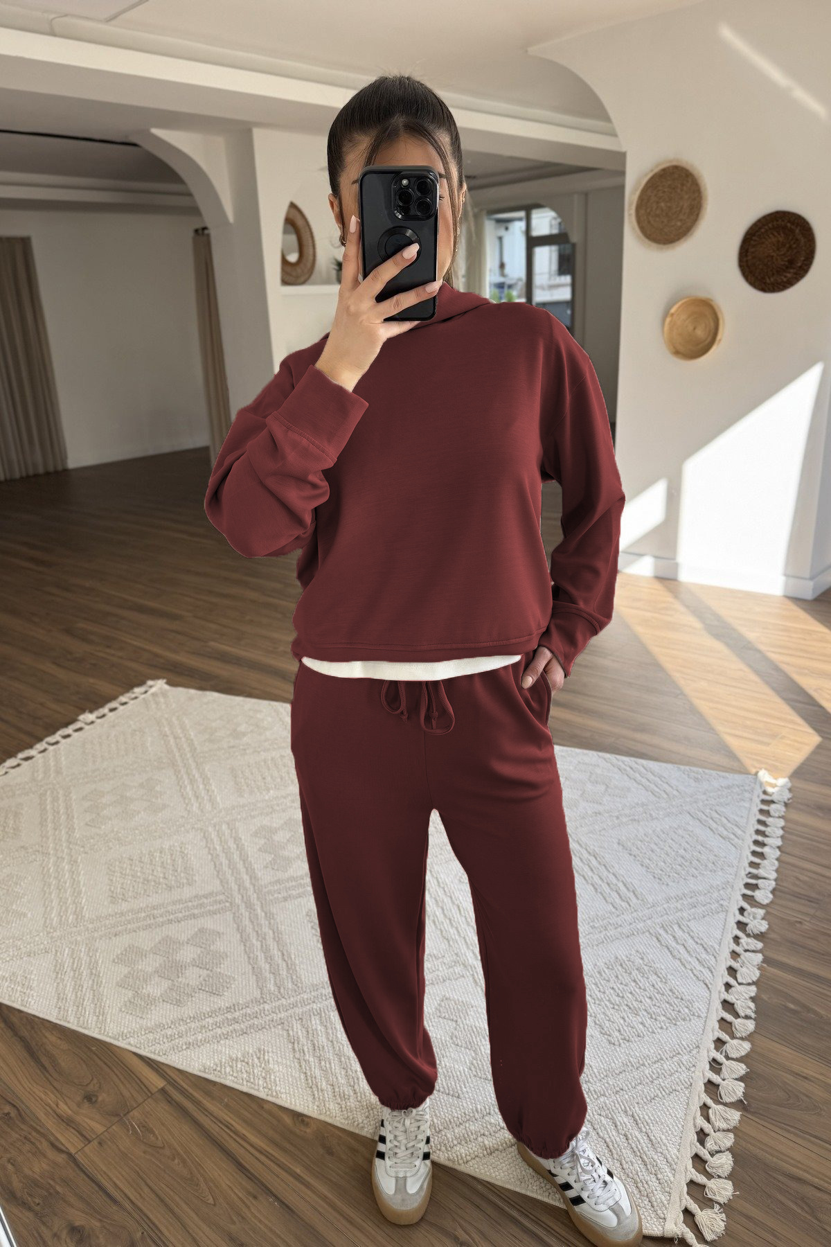 New Women's Solid Color Hooded Sweatshirt Two Pieces