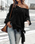 V-neck Irregular Streamline Hem Faux Mink Cashmere Sweater